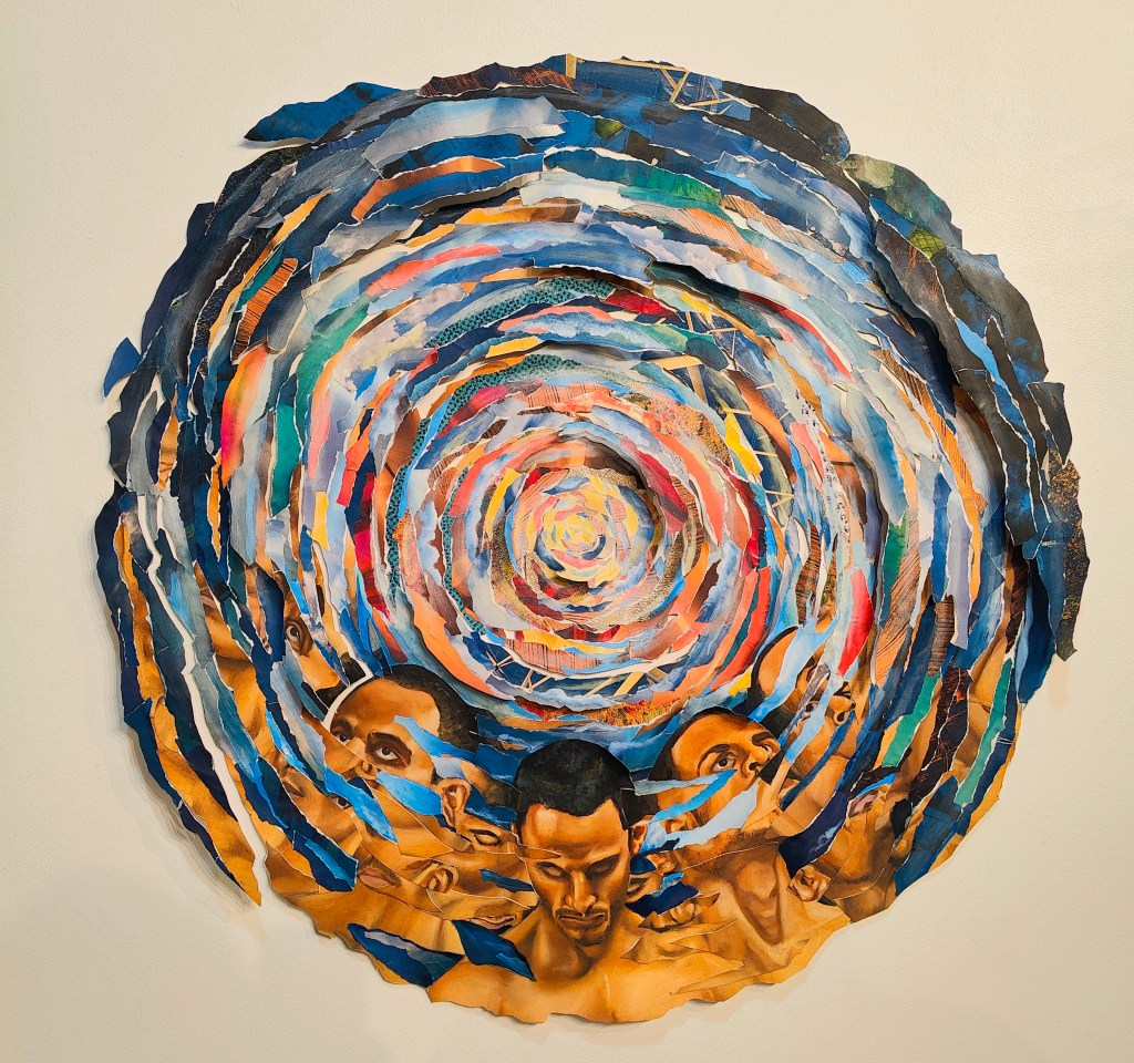 36 x 36 inches, oil and collage on paper